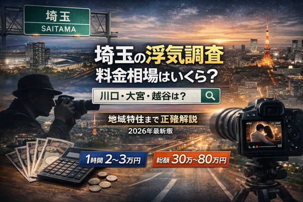 【結論】埼玉の浮気調査料金相場は、調査員2名で1時間2〜3万円、総額30万〜80万円前後が一般的です。東京と大きな差はありません。